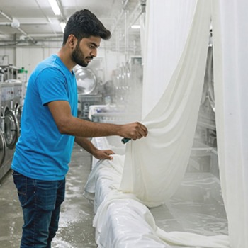 We have a three-way system of laundry. The process starts with pre-washing to identify the manner of treatment of each fabric, this is followed by washing. Moving on to drying the clothes and steam ironing them, the clothes are then finally checked and packaged.
